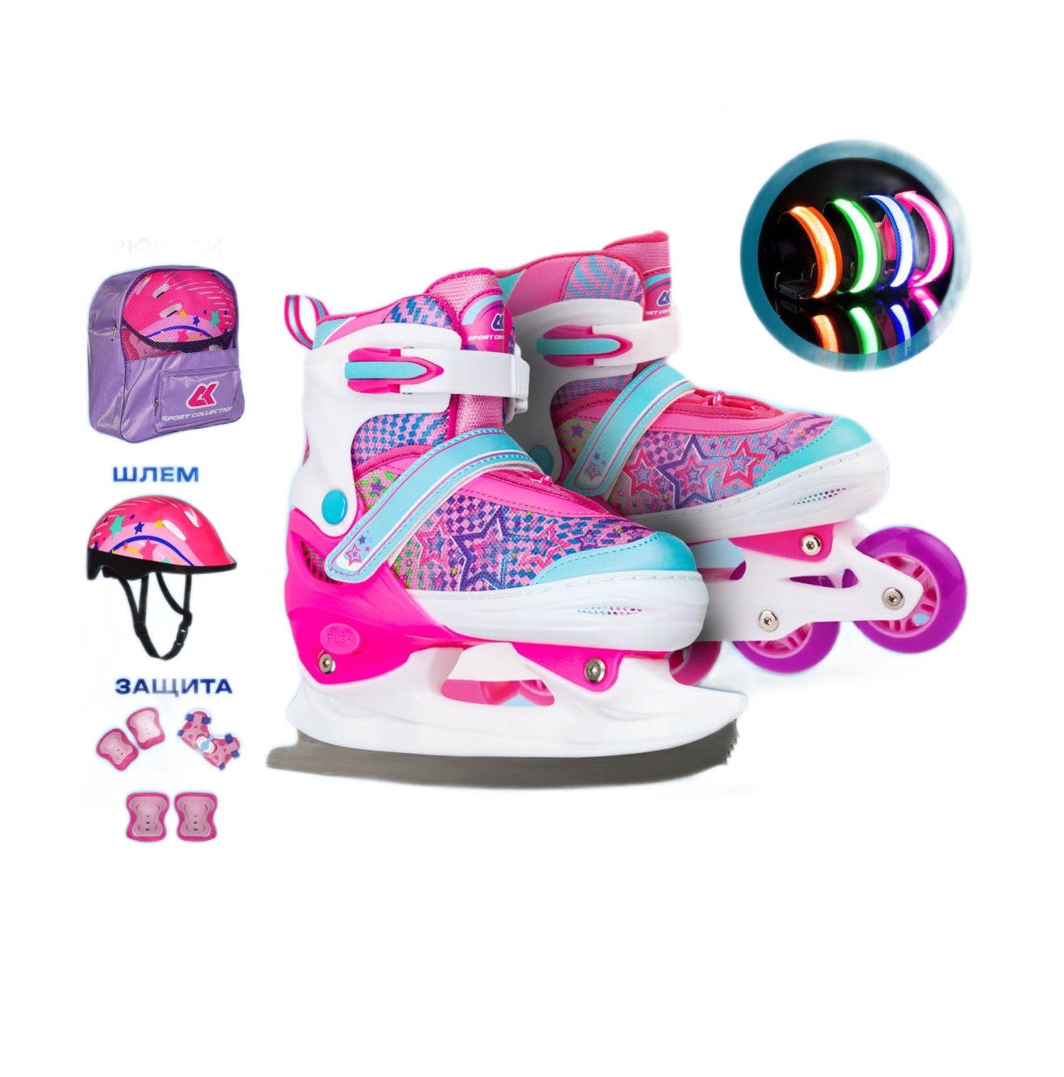 Наборы с трансформерами 3в1 (ролики, коньки, шлем, защита)